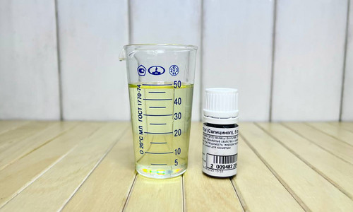 Бетаин (2.5 г) - осмопротектор, снимает стянутость, антистатика. Трилон Б (0.05 г) - хелатор, стабилизирует формулу и консервацию. Перемешиваем до полного растворения.
