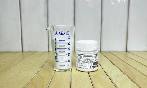 Основная часть работы уже позади, осталось только добавить RonaFlair Boroneige (Нитрид бора) (0,5 гр). Он дает превосходный эффект мягкого фокуса, морщины становятся фактически невидимыми благодаря светорассеивающим свойствам, а также добавляет пудровое мягкое чувство порошкообразным продуктам, улучшает нанесение. И Clareium White (Белый перламутр (0,2 гр) для придания легкого свечения, заполнения объема, снижения жирного блеска. Эти компоненты вынесены в отдельную фазу, так как не любят продолжительного перемешивания. Внимание! В рецепте заменили один компонент: изначально делали с RonaFlair M Sphere (0,2 гр) что отражено в видео и на фотографиях, но сейчас предлагаем использовать Clareium White (Белый перламутр (0,2 гр). Ввод в продукт по такой же технологии, у данной добавки чуть более выраженное мерцание и переливы, что выигрышно смотрится в готовом продукте.